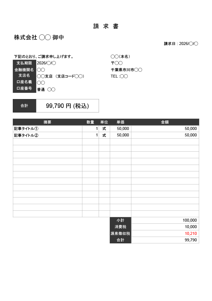 請求書の見本(Googleドキュメント版)はこちらです。