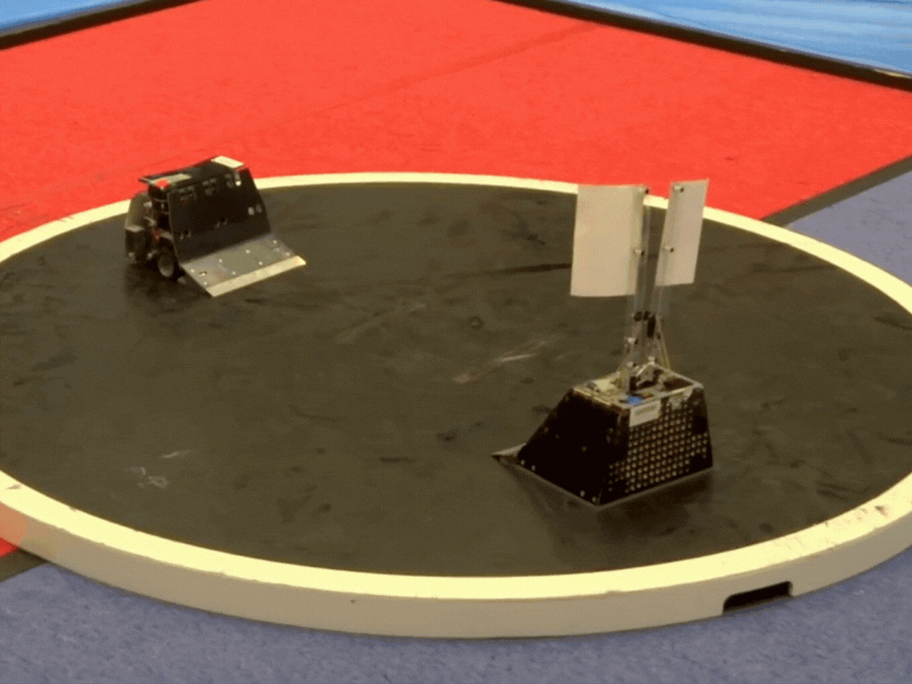 相手のロボットを土俵から押し出したら勝ち、というルールです